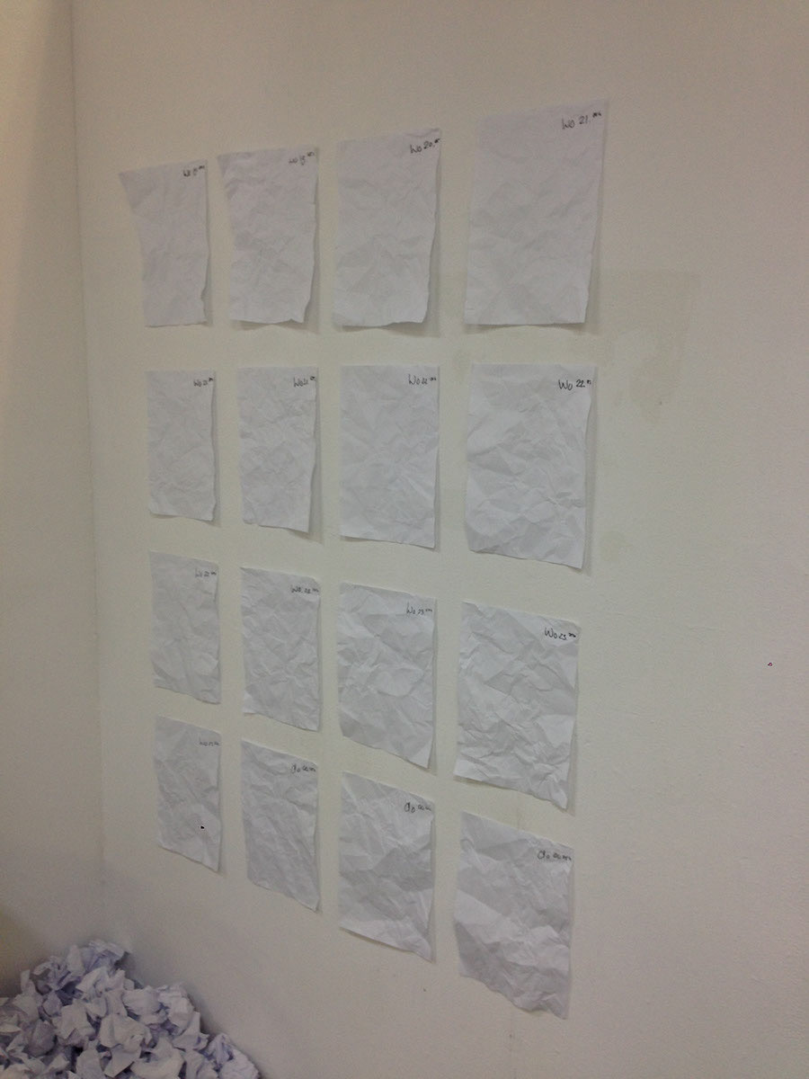 Verfrommeld, gesnoven, uitgekleed, gehangen.