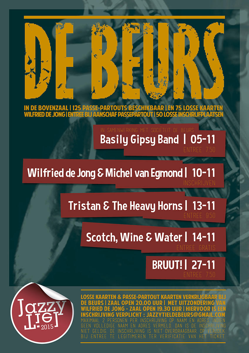 Opdrachtgevers: Cafè De Beurs Tiel | Restaurant Olijf | Restaurant bij Casper | RondomBaaz | Hogeschool voor de Kunsten Utrecht | Jazzy Tiel | Arty Tiel